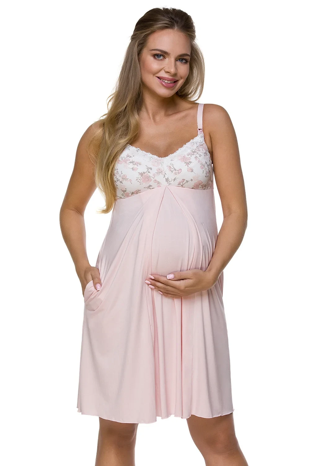 Nocna marki Lupoline. Model 3122. Produkt został wykonany z 70% wiskoza, 20% elastan, 10% bawełna. Produkt posiada regulowane ramiączka. Długość: krótkie. Długość rękawa: na ramiączkach. Odzież ciążowa. Produkt damski. Rodzaj dekoltu: szpic.