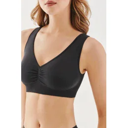 Odkryj wygodę i nowoczesny design w jednym! Bezszwowy top damski z marszczeniem to połączenie codziennego komfortu z funkcjonalnością sportowego biustonosza. Dzięki specjalnemu marszczeniu na biuście model doskonale dopasowuje się do sylwetki, zapewniając lekkie podtrzymanie bez konieczności stosowania fiszbin. Elastyczna, oddychająca dzianina gwarantuje idealne dopasowanie – bez podwijania i marszczenia.Innowacyjna technologia bezszwowa sprawia, że top nie odznacza się pod ubraniem, dając efekt „second skin”. Idealny na siłownię, do jogi, ale również do codziennych stylizacji jako element bielizny lub modny tank top.