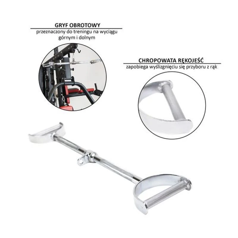 UW16 HMS je otočná tyč určená pro trénink na horním a dolním výtahu. Lze ji použít pro celou řadu cviků pro různé svalové skupiny horní části těla, počínaje malými svalovými skupinami, jako jsou bicepsy a tricepsy, přes přední a boční ramenní svaly až po nejširší svaly a extenzory zad.