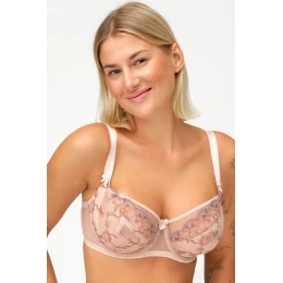 Biustonosz marki Azal. Model Dalia. Posiada druty, które podpierają piersi odpowiednio je kształtując. Produkt posiada regulowane ramiączka bez możliwości ich odpięcia. Haczyki do ramiączek metalowe. Biustonosz zapinany na haftki. Miejsce zapięcia: tył. Produkt został wykonany z 88% poliamid, 8% bawełna, 4% elastan. Produkt damski.
