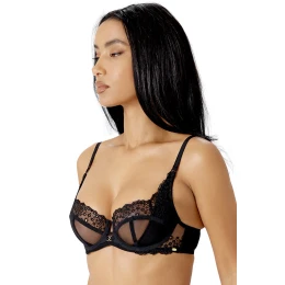 Biustonosz marki Gossard. Model 21205. Posiada druty, które podpierają piersi odpowiednio je kształtując. Produkt posiada regulowane ramiączka bez możliwości ich odpięcia. Haczyki do ramiączek metalowe. Biustonosz zapinany na haftki. Miejsce zapięcia: tył. Produkt został wykonany z 57% poliamid, 34% poliester, 9% elastan. Produkt damski.