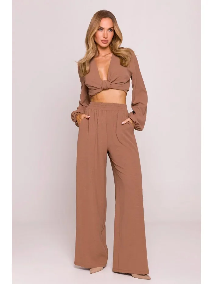 model 21136179 Kalhoty se širokými nohavicemi čokoládové - Moe