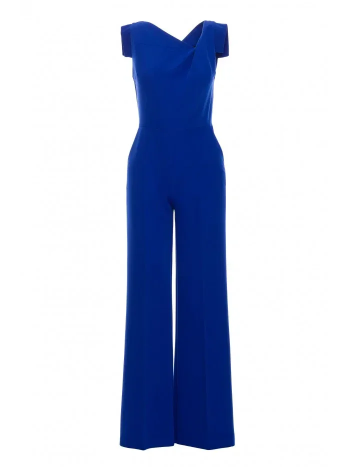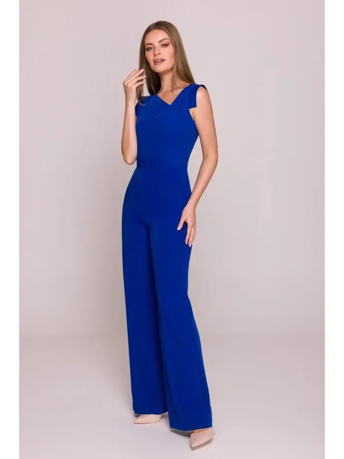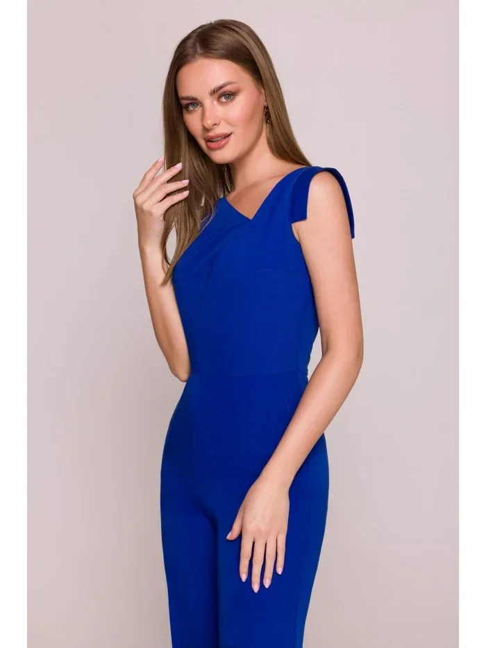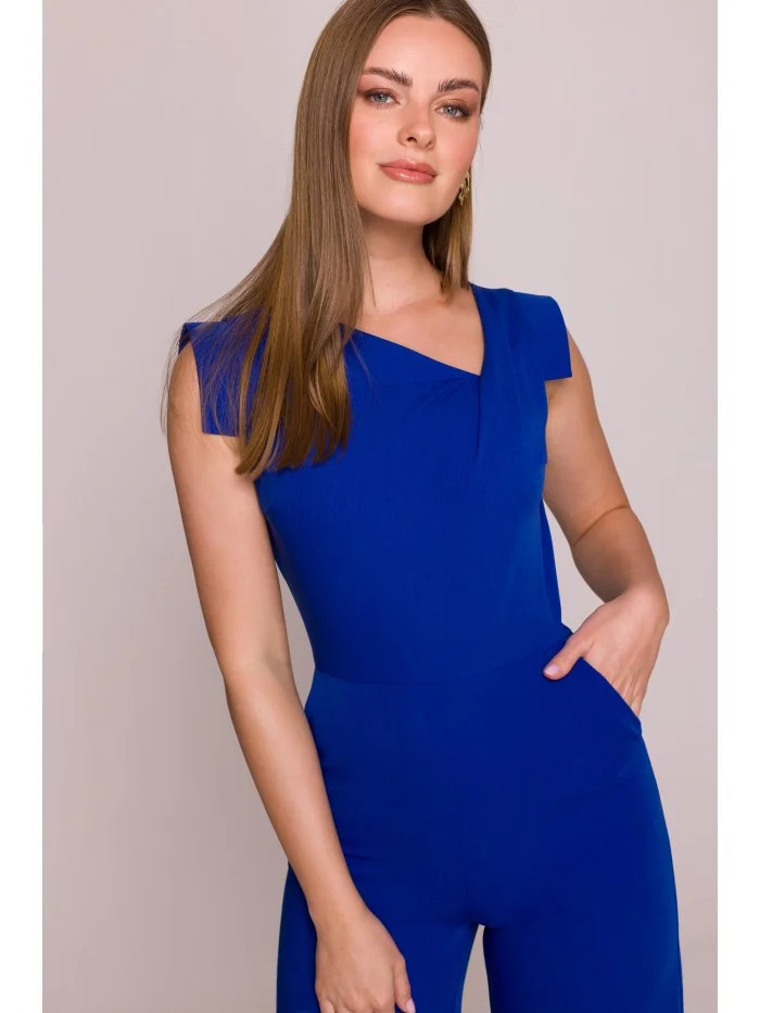 model 21154701 Elegantní overal s asymetrickým výstřihem královská modř - STYLOVE