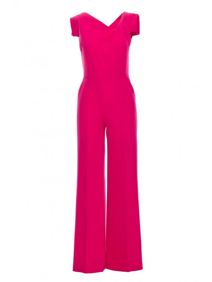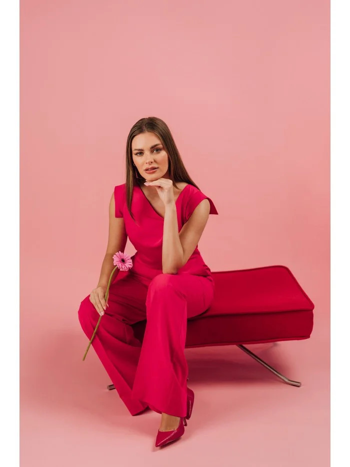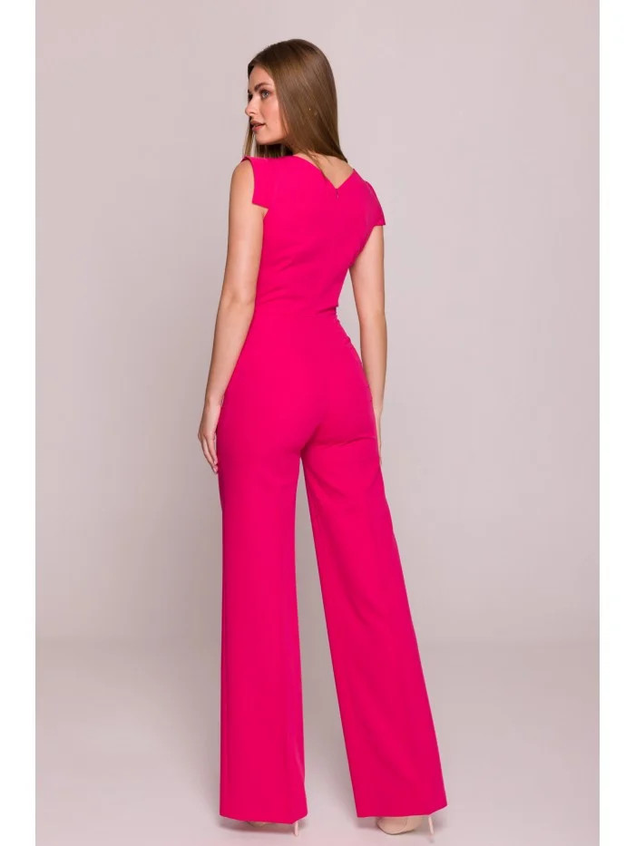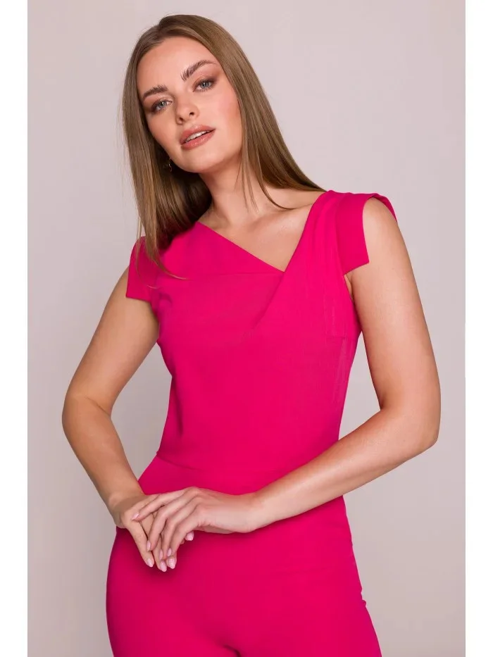 model 21154716 Elegantní overal s asymetrickým výstřihem růžový - STYLOVE