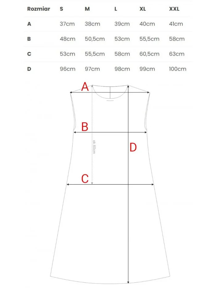65% polyester 30% viskóza 5% elastan Podšívka: 95% polyester 5% elastan Materiál: hladká, mírně elastická tkanina se saténovým povrchem PODROBNOSTI O VÝROBKU Výstřih: kulatý, přiléhající ke krku, s kovovou ozdobou uprostřed Rukávy: bez rukávů Zapínání: skrytý zip na zádech Kapsy: žádné Podšívka: s podšívkou Model: S408 Navrženo a vyrobeno v Polsku Modelka je vysoká 170 cm a má na sobě velikost S STYL A STŘIH Střih: silueta do A Tvar: volný střih Délka: nad kolena