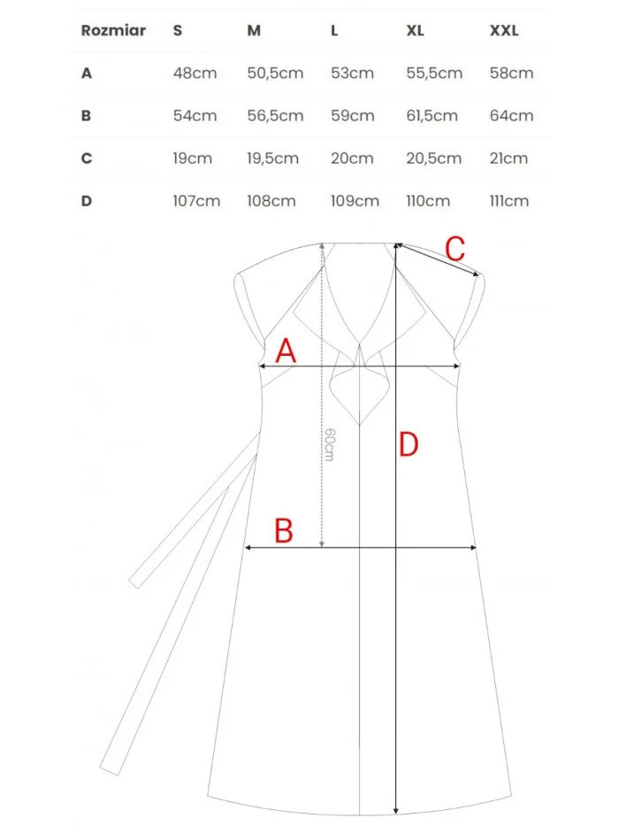 materiál: 95% polyester 5% elastan Materiál: hladká tkanina s jemným leskem PODROBNOSTI O PRODUKTU Výstřih: výstřih do V s ozdobným volánkem Rukávy: krátké, mírně spadlé Zapínání: skrytý boční zip Kapsy: žádné Podšívka: žádná Doplňky: látkový pásek na zavázání v pase Model: S411 Navrženo a vyrobeno v Polsku Modelka je vysoká 170 cm a má na sobě velikost S STYL A STŘIH Střih: mírně rozšířený směrem dolů Tvar: áčkový Délka: midi, pod kolena