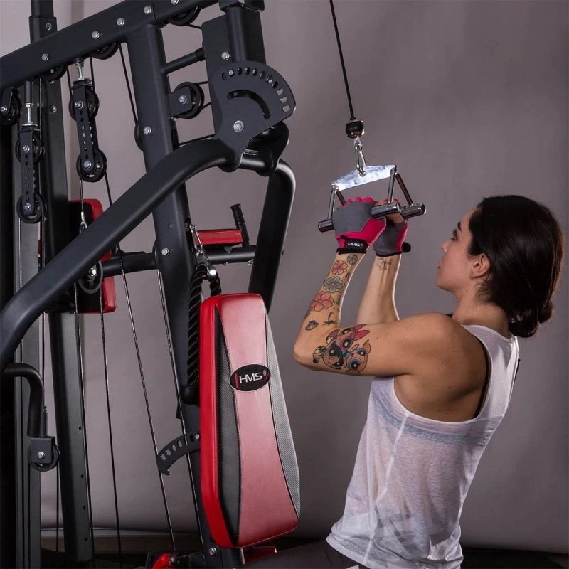 UW05 HMS je dvojitá rukojeť určená pro trénink na horním a dolním výtahu. Používá se k procvičování zádových svalů, ale dobře poslouží i při cvičení s polovinou činky (druhá polovina leží na podlaze). Jeho tyč dokonale padne doprostřed úchopu, což umožňuje volně provádět cvik veslování s polovinou činky v poklesu trupu.