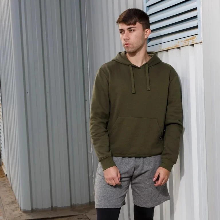 Mikina s kapsou a stahovací kapucí. Uvnitř je fleecová tkanina, která poskytuje maximální pohodlí a teplo. Manžety a lem jsou vyrobeny z žebrování pro lepší přizpůsobení.