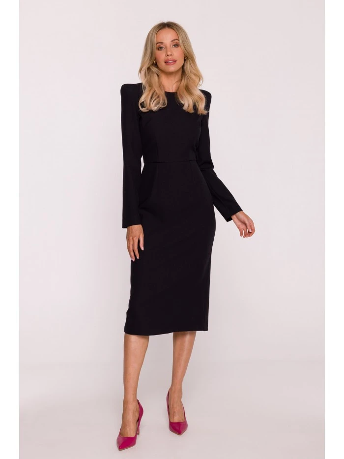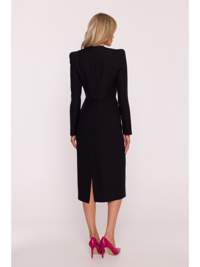 Přidání recenze k model 21319033 Tužkové šaty s ozdobnými rameny černé - STYLOVE