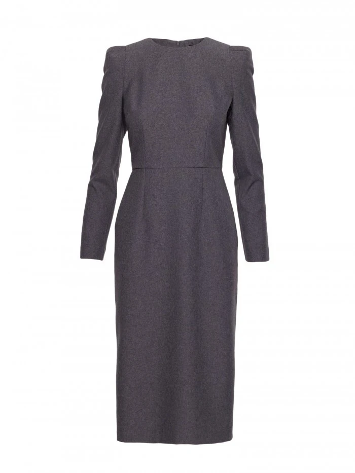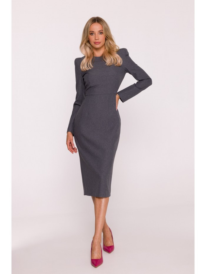 model 21319051 Tužkové šaty s ozdobnými rameny šedé - STYLOVE