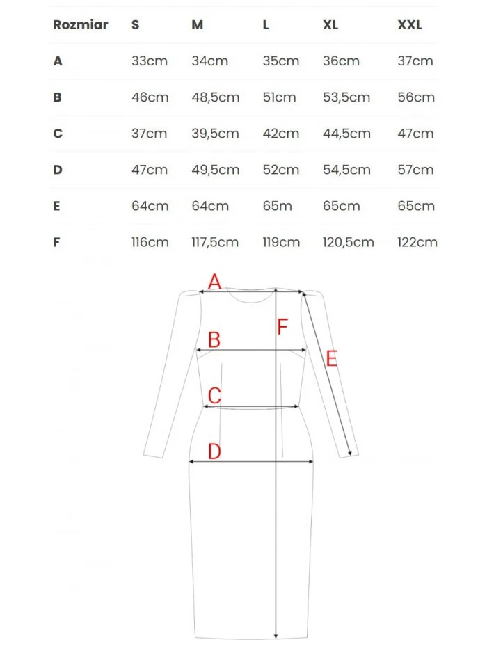| F | 116cm | 117,5cm | 119cm | 120,5cm | 122cm |