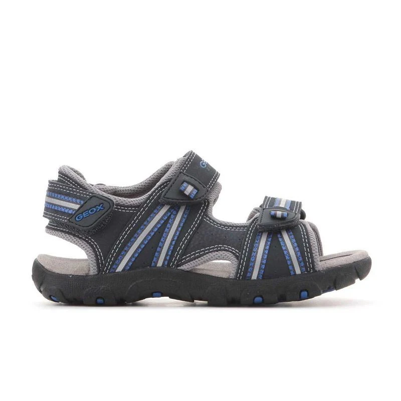 Prodyšné chlapecké sandály. Perforovaná podrážka - nezbytná součást obuvi Geox. Svršek s trojitým zapínáním na suchý zip pro snadné nazouvání a vyzouvání, nárazy tlumícím vzorkem a protiskluzovou podrážkou. Špičková technologie Geox Respira, která kombinuje perforovanou podrážku s prodyšnou a voděodolnou membránou, umožňuje přirozenou regulaci teploty a vytváří uvnitř boty mikroklima, které udržuje nohu v suchu po celý den.