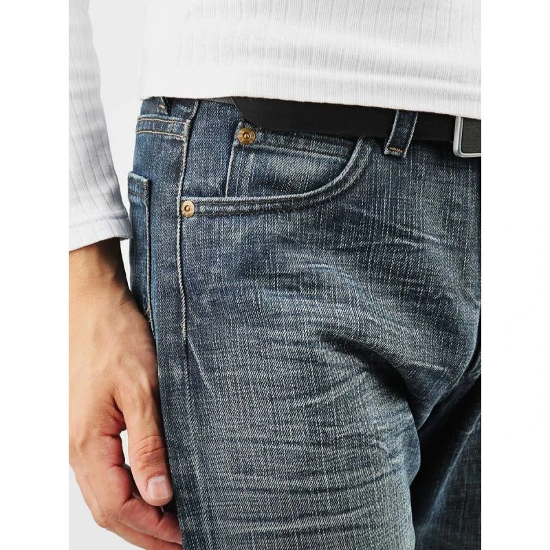 Pánské džínové kalhoty s nízkým sedem a rozšířenými nohavicemi, se zapínáním na knoflíky.