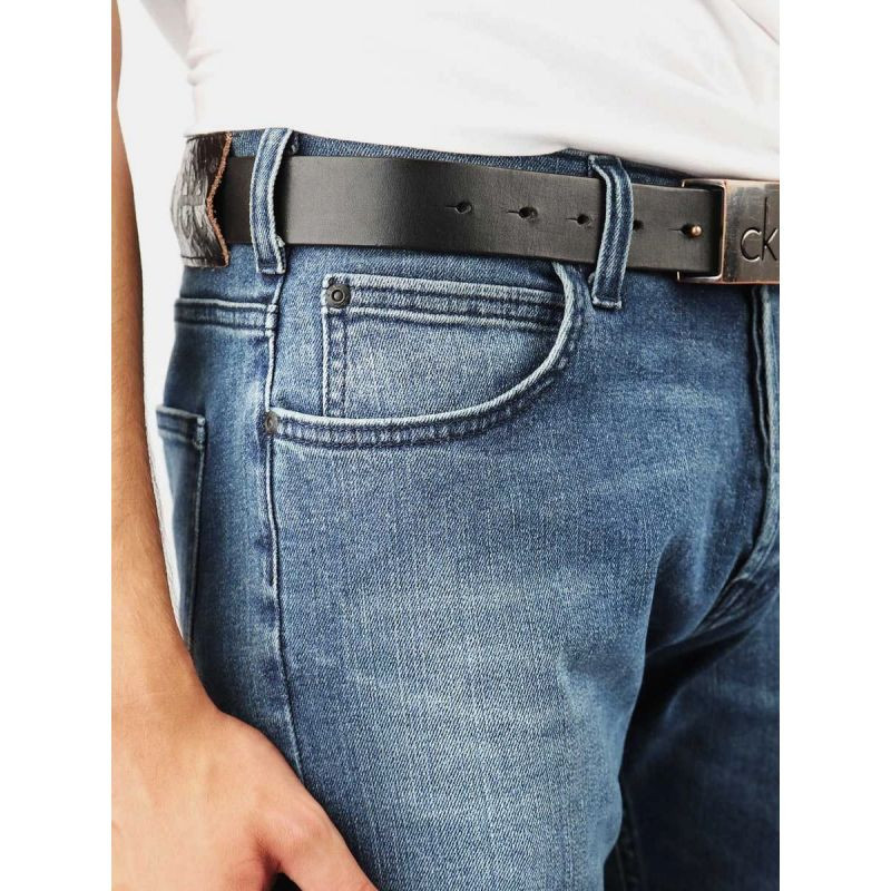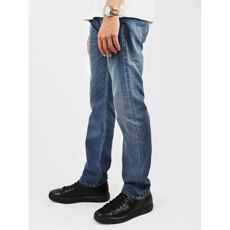Pánské džínové kalhoty s rovnými nohavicemi a nízkým sedem, zapínání na knoflíky, nášivka s logem výrobce na zadním pásu.