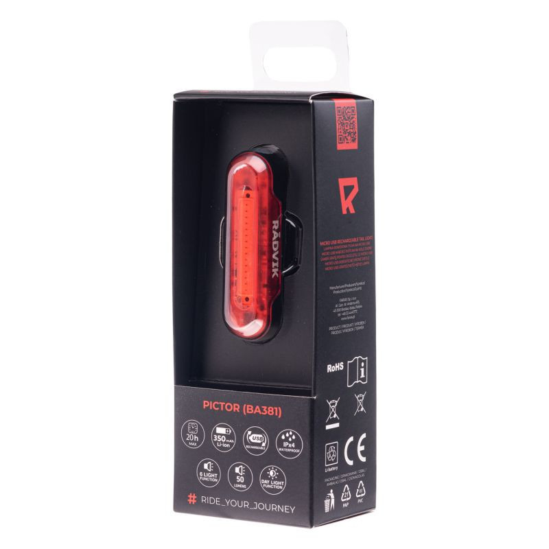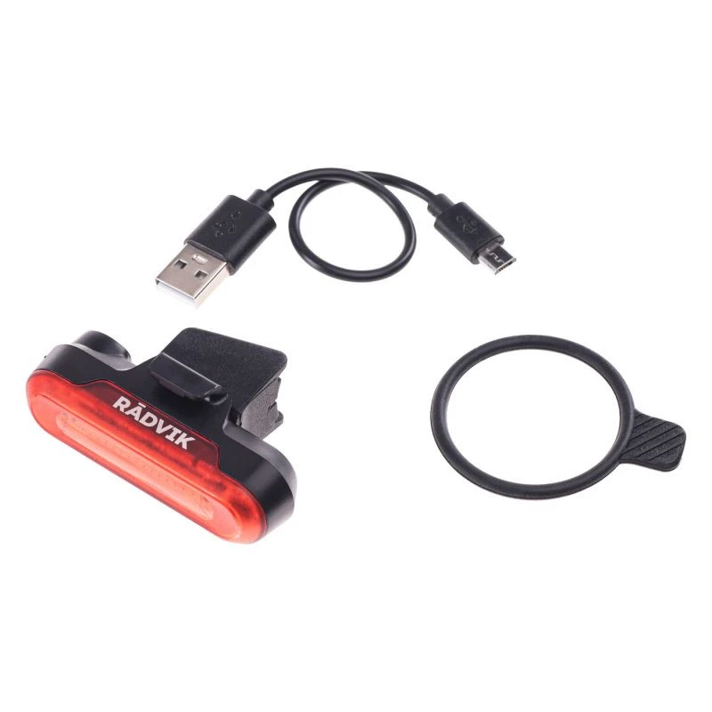 OŚWIETLENIE ROWEROWE SKŁAD MATERIAŁOWY: SILIKON, ABS, PCB SPECYFIKACJA: LUMENY: 20 LM CZERWONY LED WODOODPORNOŚĆ: IPX4 ŁADOWANE PRZEZ USB BATERIA W ZESTAWIE