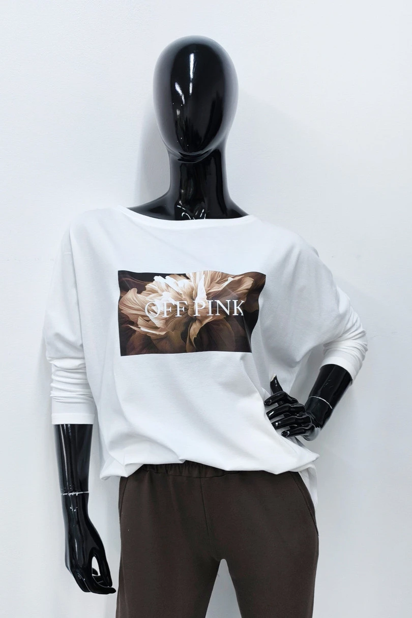 Wygodna, stylowa i zawsze na czasie — ta damska bluzka oversize z długim rękawem to must-have w każdej garderobie. Uszyta z miękkiej, elastycznej dzianiny (95% bawełna, 5% elastan), zapewnia pełen komfort noszenia i swobodę ruchów przez cały dzień. Charakterystyczny nadruk oraz elegancka blaszka z logo "Off Pink" dodają jej modowego charakteru. Idealnie sprawdzi się jako baza do codziennych i casualowych stylizacji, a jej luźny krój pasuje do każdego typu sylwetki. Świetnie wygląda zarówno z jeansami, jak i spodniami typu jogger czy spódnicą.