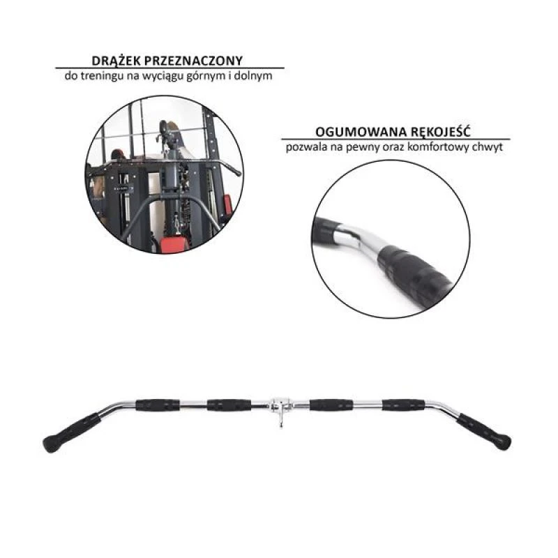 - Krajní rukojeti jsou nakloněné, což při nácviku přítahu na hrazdě nad hlavou pomáhá přitáhnout lokty k trupu, tj. zachovat co nejlepší techniku cvičení. Rukojeť umožňuje přesné provádění tréninku bez obav, že vám vyklouzne z rukou. To zajišťují pogumované rukojeti, které navíc poskytují bezpečné a pohodlné uchopení.