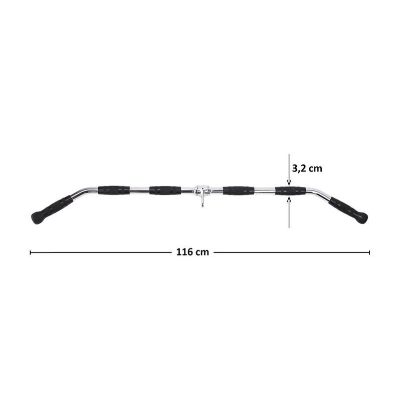 - Je vyroben z vysoce kvalitní oceli, což umožňuje trénink se značnou zátěží. Její délka a počet pogumovaných rukojetí zaručují mnoho možností úchopu, od velmi úzkých až po velmi široké. Tímto způsobem umožní rukojeť při každém cvičení rozvíjet svaly v různých délkách jejich úponů.
