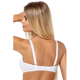 Biustonosz marki PariPari. Model Cassi. Posiada druty, które podpierają piersi odpowiednio je kształtując. Fiszbiny pionowe osadzone na bokach. Produkt posiada regulowane ramiączka bez możliwości ich odpięcia. Haczyki do ramiączek metalowe. Biustonosz zapinany na haftki. Miejsce zapięcia: tył. Produkt został wykonany z 78% poliamid, 17% elastan, 5% bawełna. Produkt damski.