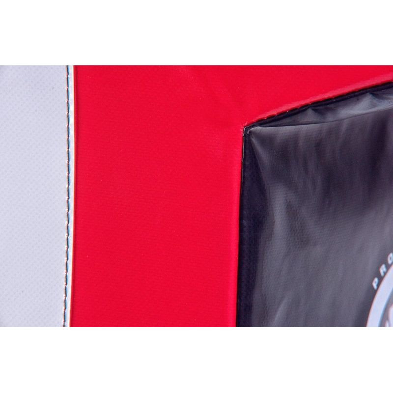 Tarcza została wykonana z 7 warstwowego plawilu o gramaturze ok 680 g zapewniającego bardzo dużą odporność na uszkodzenia oraz elastyczność gwarantująca wysoki komfort treningu. Tarcza wypełniona jest specjalistyczną pianką poliuretanową o twardości 100kg/m3 odporną na zbijanie się oraz odkształcanie podczas treningu.