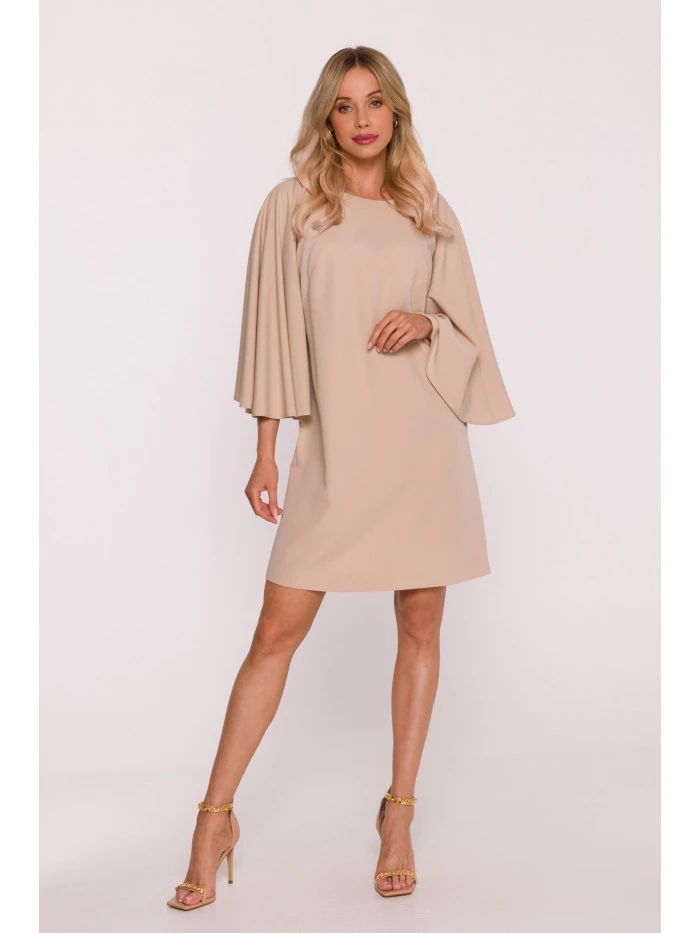 model 21470730 Mini šaty s netopýřími rukávy béžové - STYLOVE