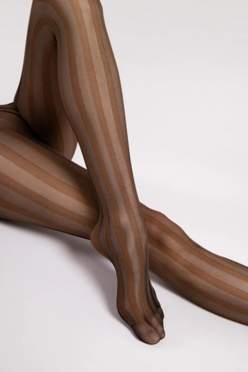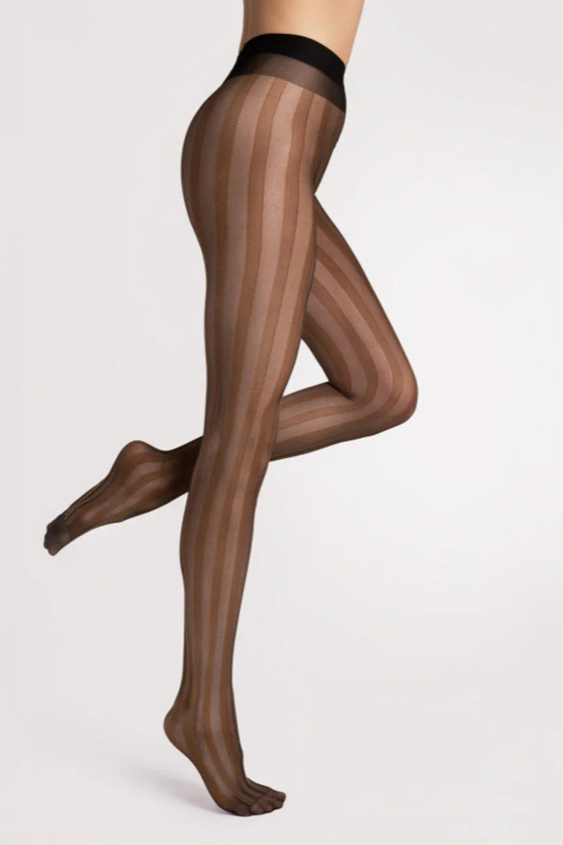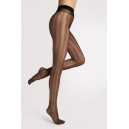 Grafické, svisle pruhované punčocháče, opticky zeštíhlující nohy - moderní design vytvářející dojem optického zeštíhlení - pásek a vzor na celých punčocháčích, díky čemuž jsou ideální k nošení s minišaty a šortkami - kvalitní, matný úplet, materiály od renomovaných evropských dodavatelů.