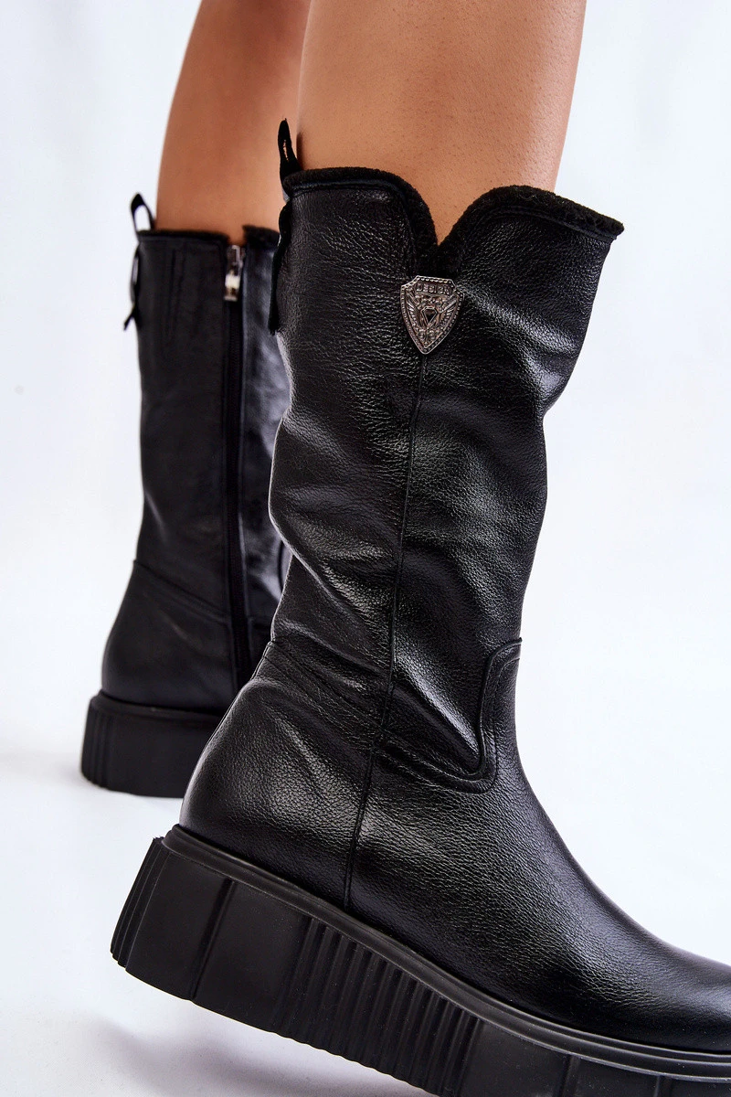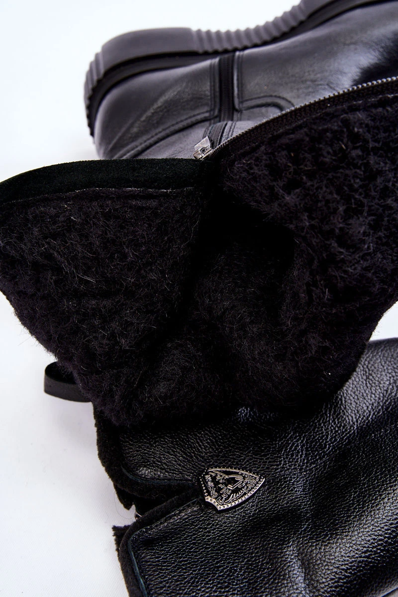 model 21605589 Kožené dámské kozačky s vlnou černé - Zazoo
