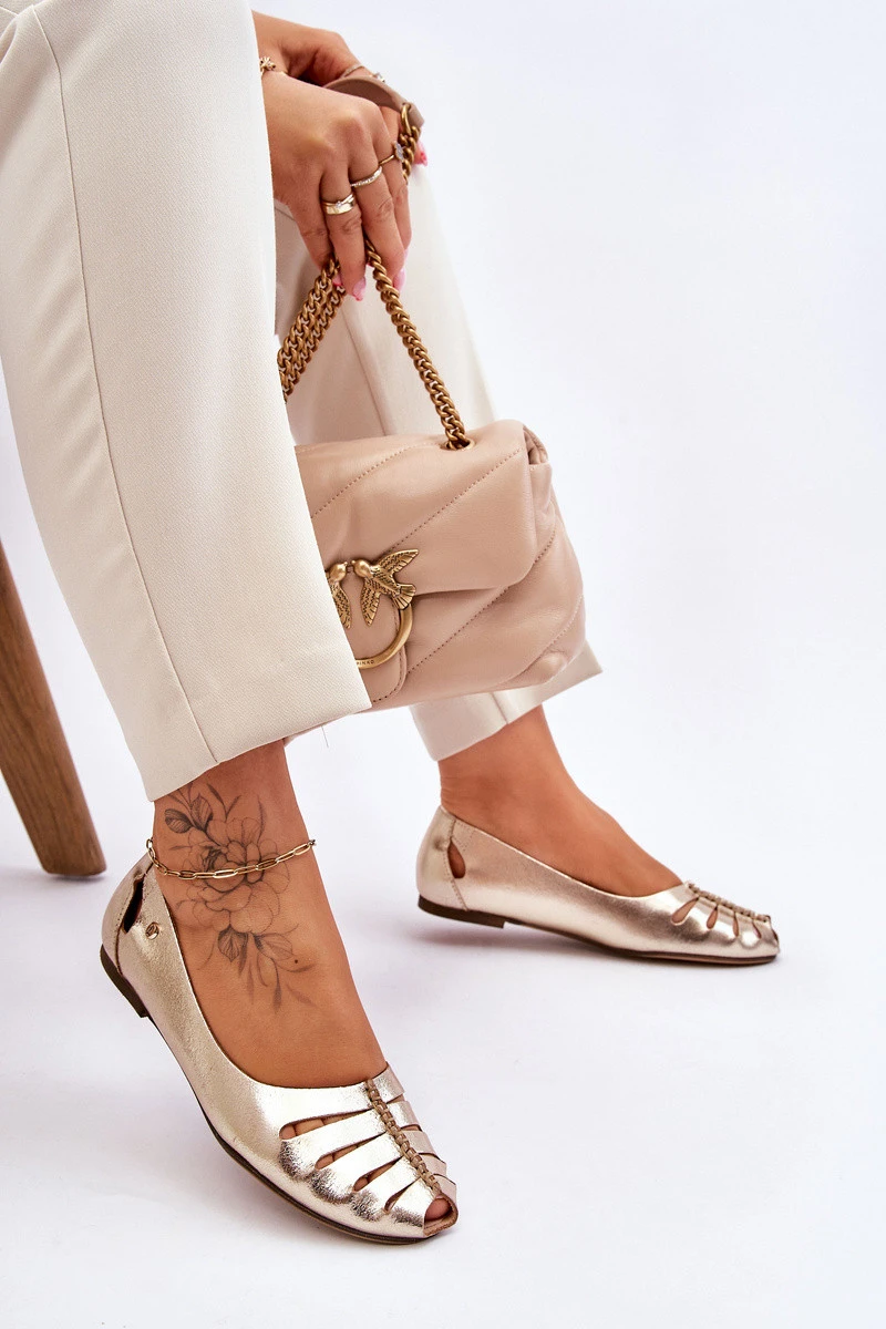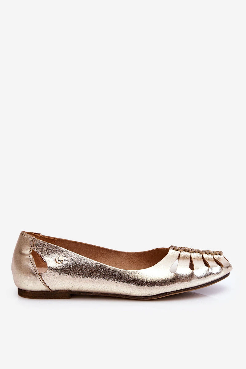 model 21611246 Pohodlné Dámské Kožené Baletky Zlaté - Zazoo