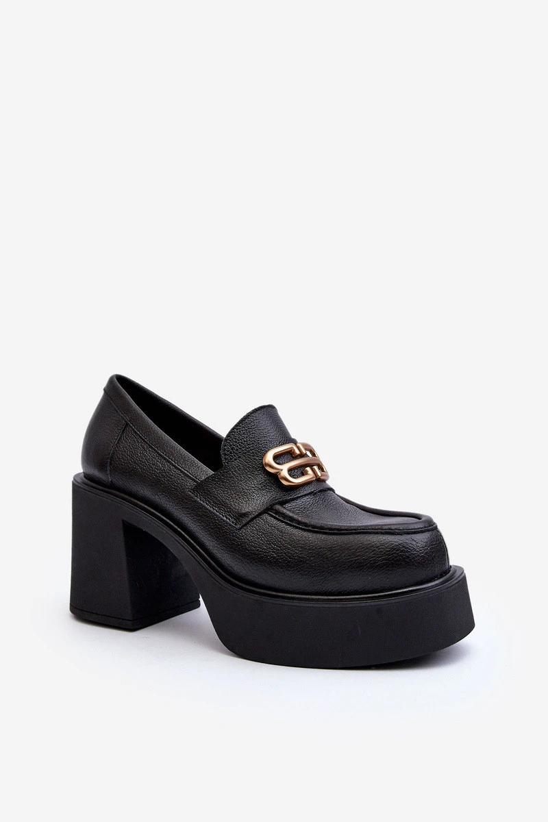 model 21646965 Kožené Dámské Polobotky na Podpatku Černé - Zazoo