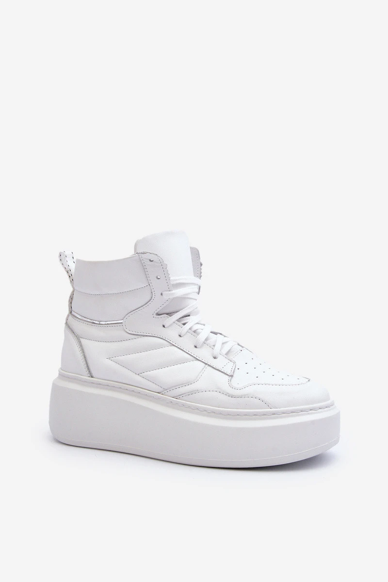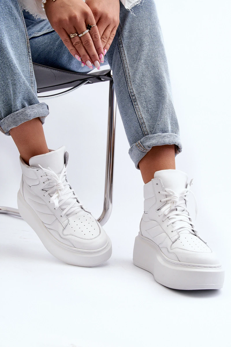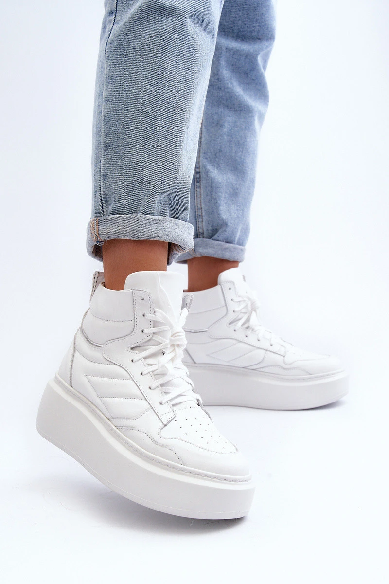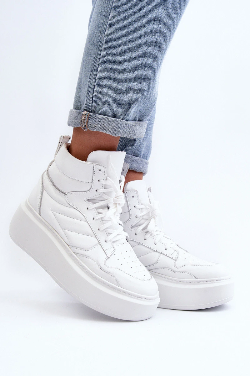 model 21647188 Dámské Kožené Sportovní Boty Na Platformě Bílé - Zazoo