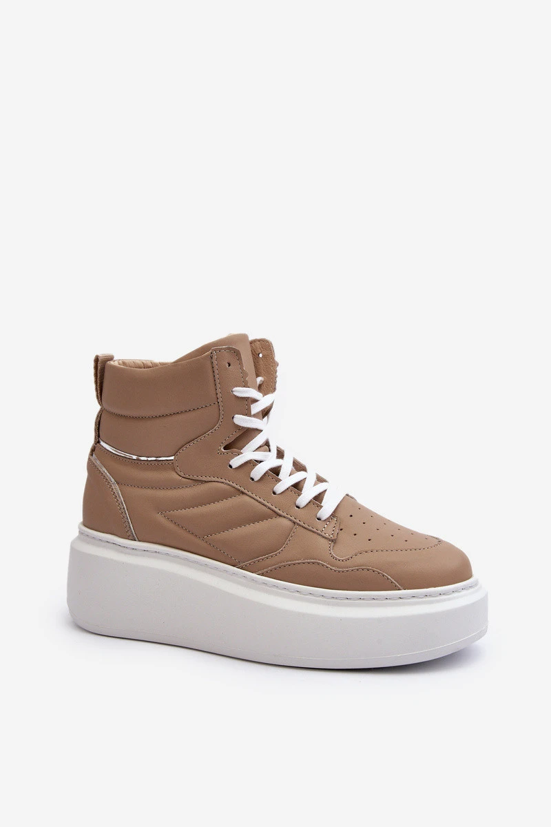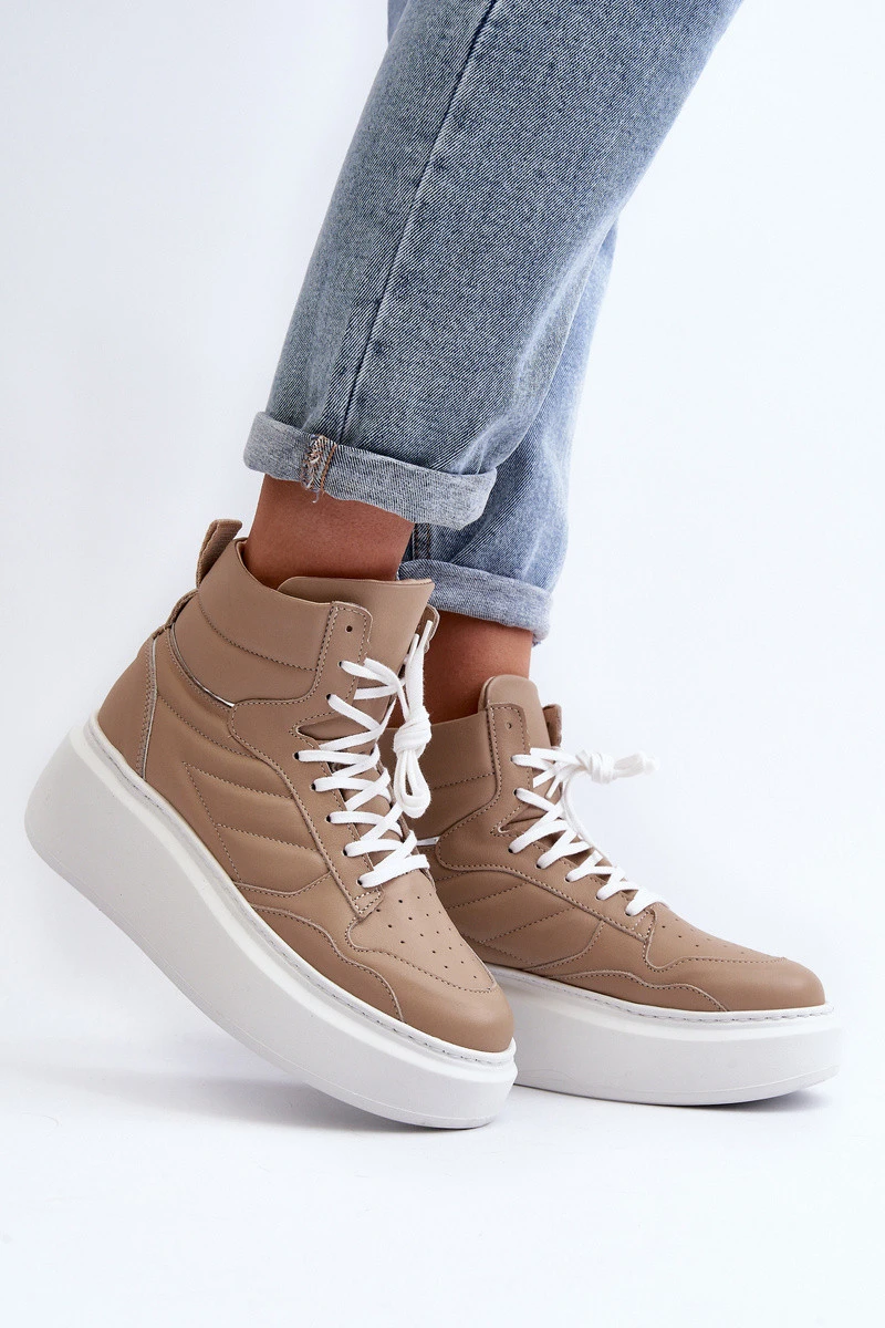 model 21647195 Dámské Kožené Sportovní Boty na Platformě Beige - Zazoo