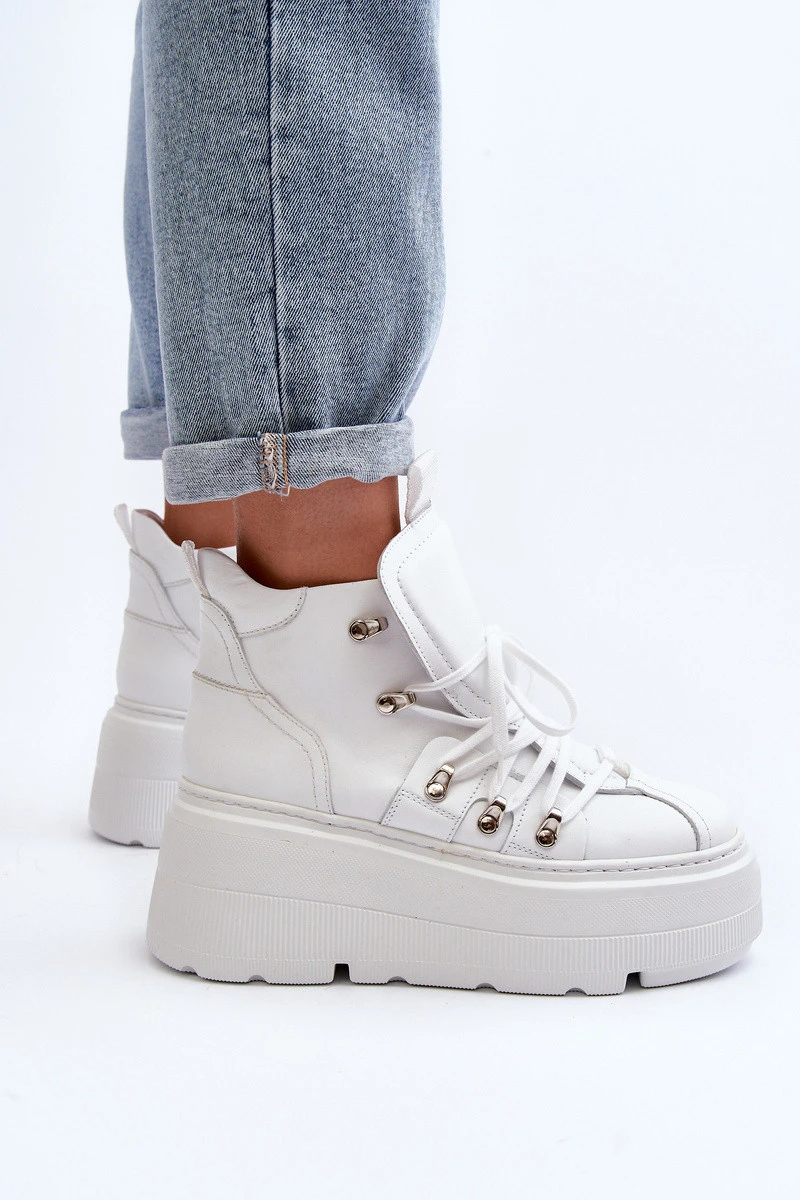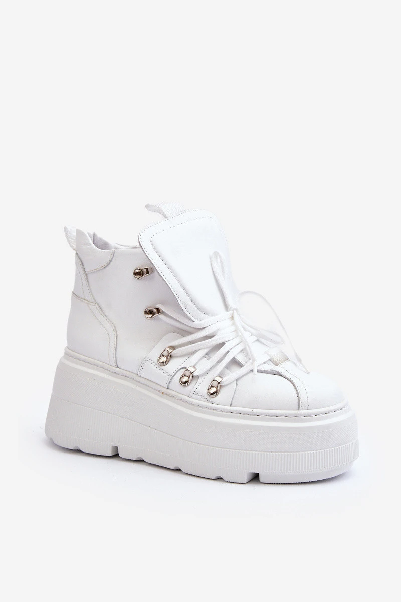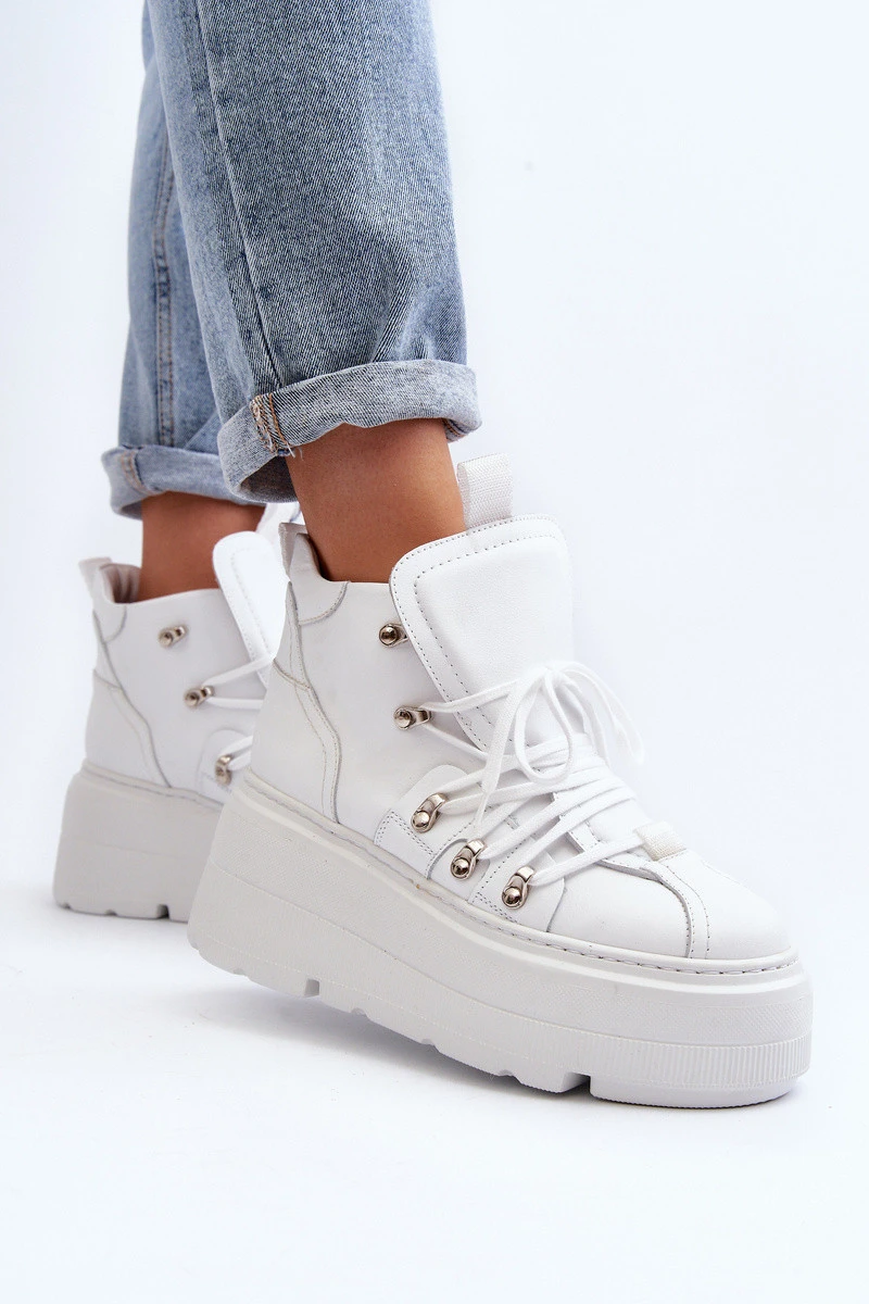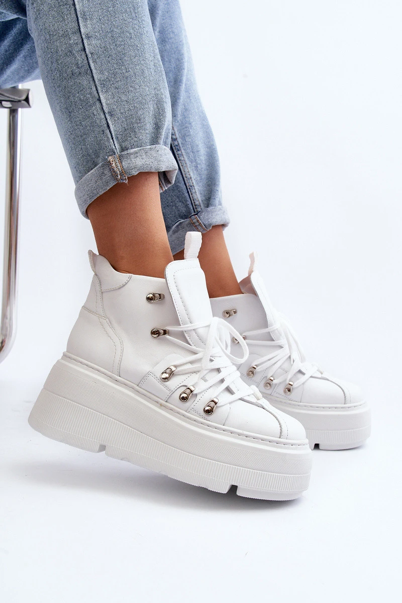 model 21647308 Kožené Dámské Sportovní Boty Bílé - Zazoo