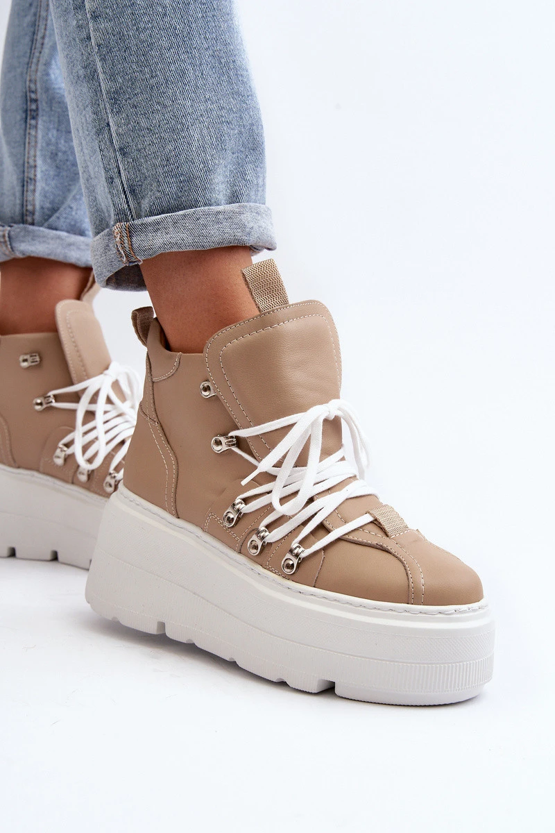 model 21647314 Kožené Dámské Sportovní Boty Beige - Zazoo