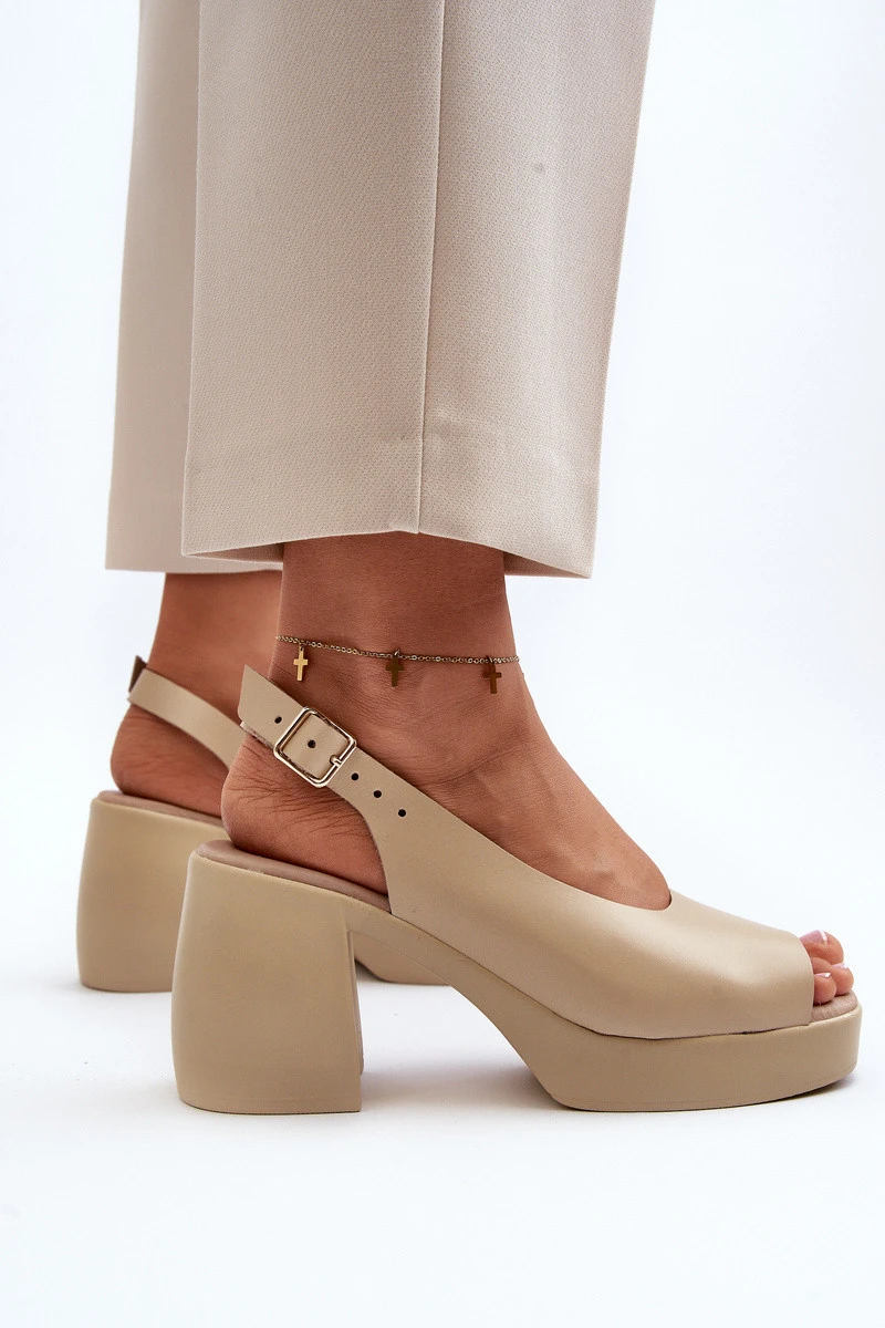 model 21647916 Kožené Sandály Na Masivní Podpatku Bežové - Zazoo