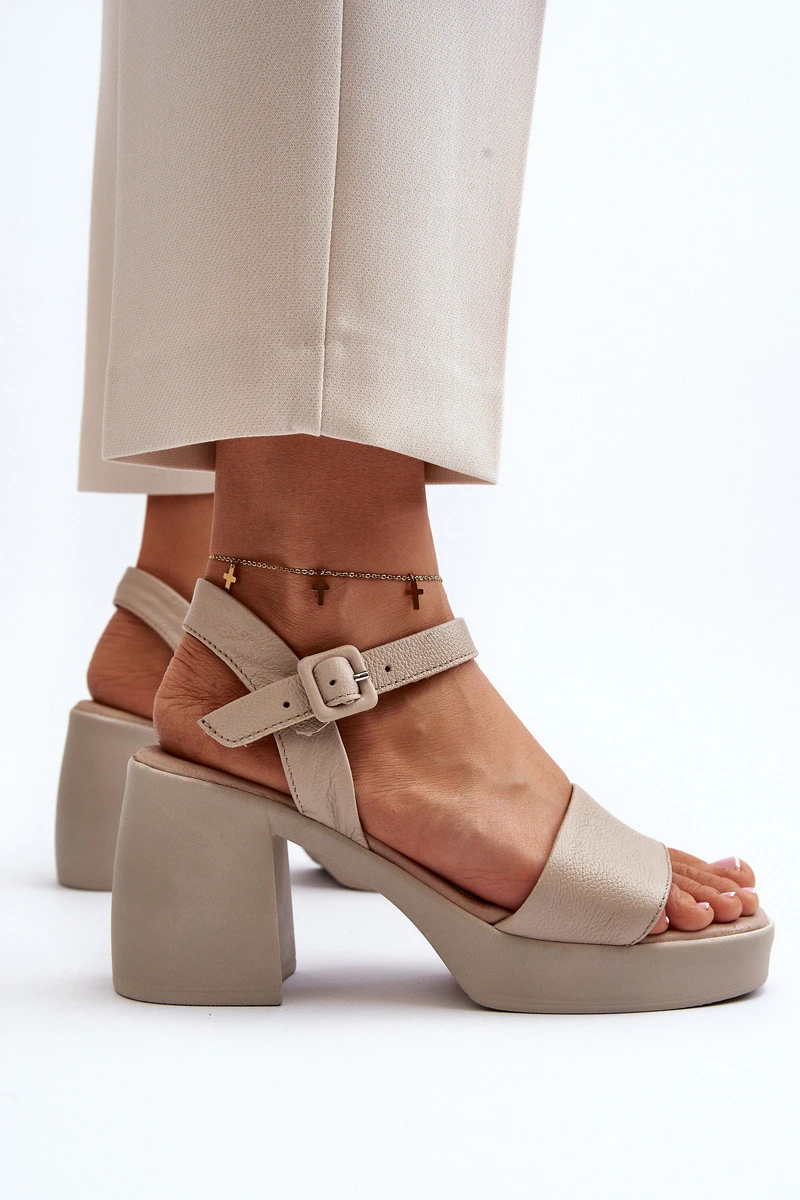 model 21647980 Dámské kožené sandály na podpatku Beige - Zazoo