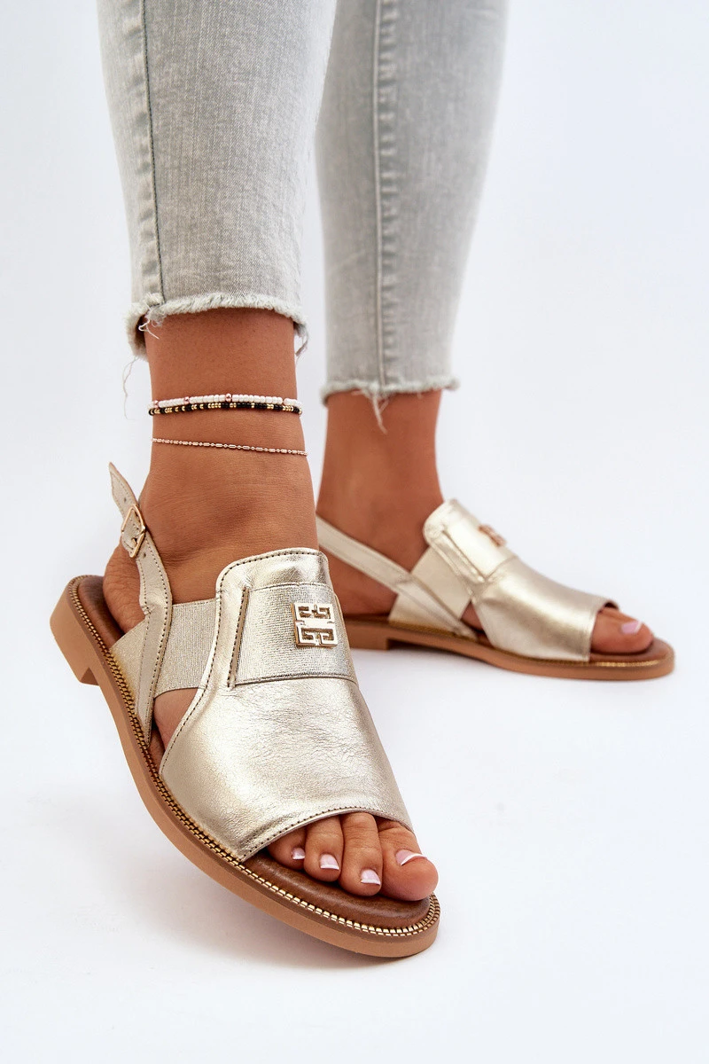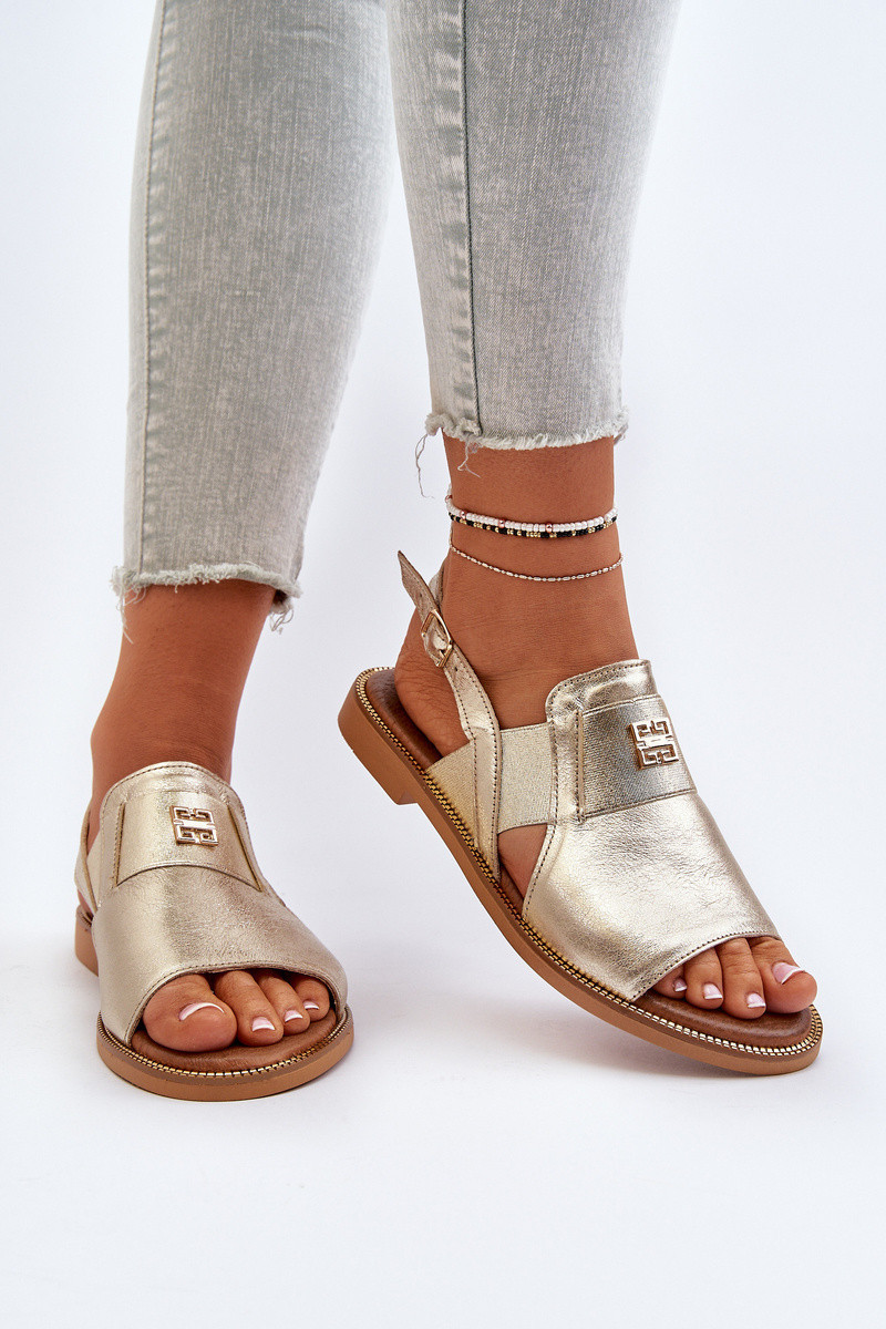model 21650265 Dámské Kožené Sandály Zlaté - Zazoo