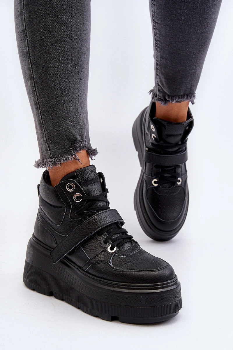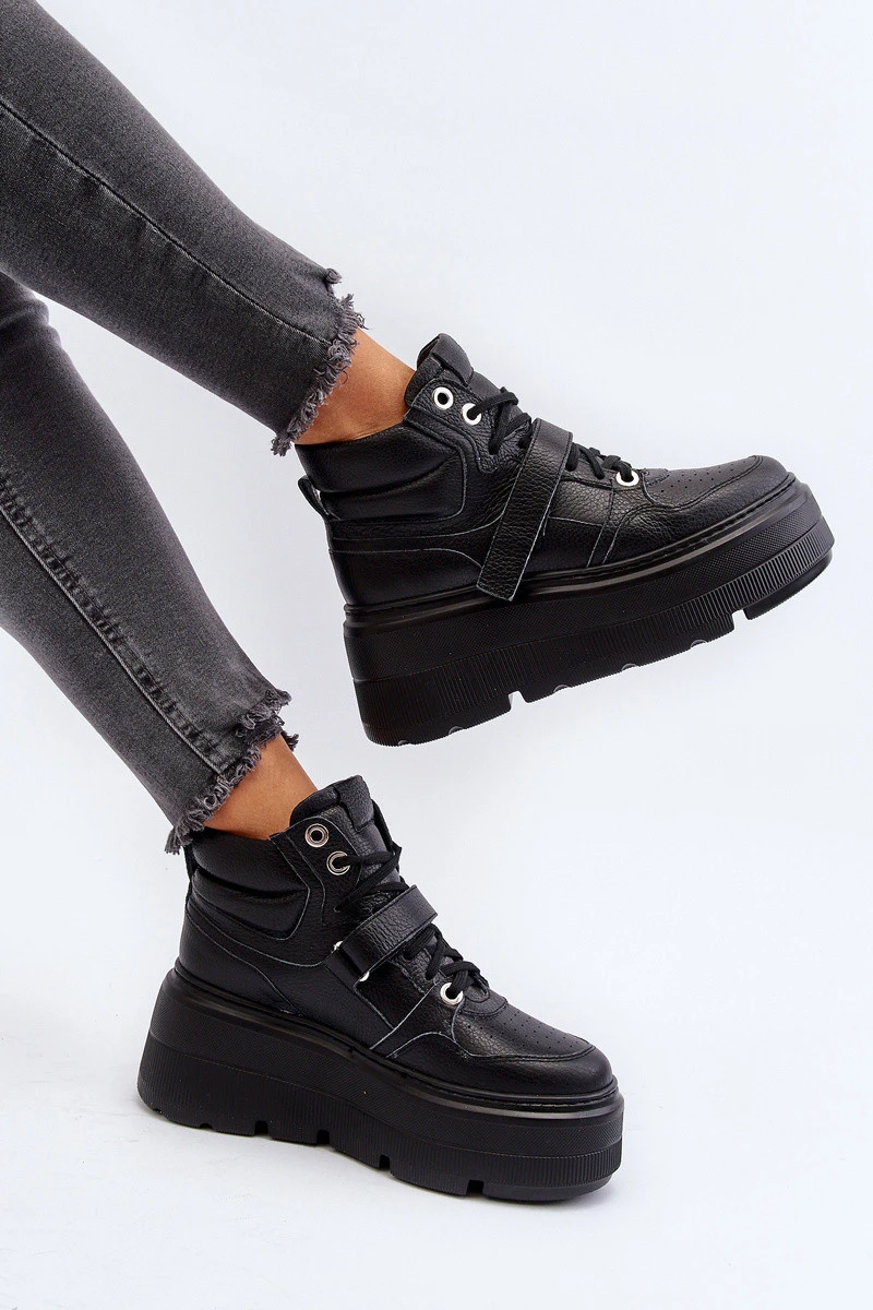 model 21652314 Dámské Kožené Sportovní Boty na Platformě Černé - Zazoo