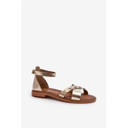 model 21655575 Ploché Dámské Kožené Sandály Zlaté - Zazoo