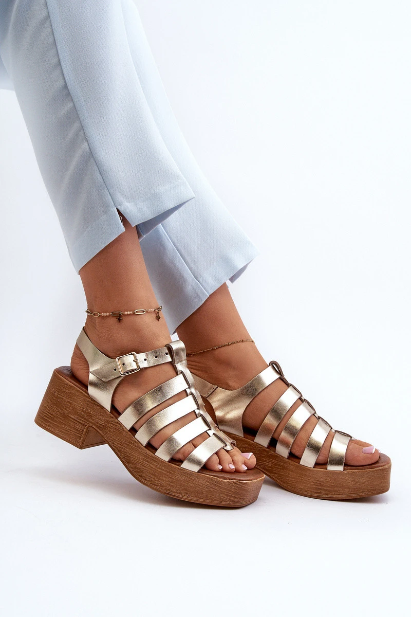 model 21659231 Dámské kožené sandály Zlaté - Zazoo