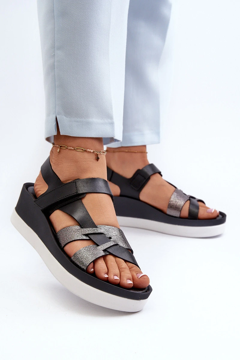model 21659238 Dámské Kožené Sandály na Platformě Černé - Zazoo