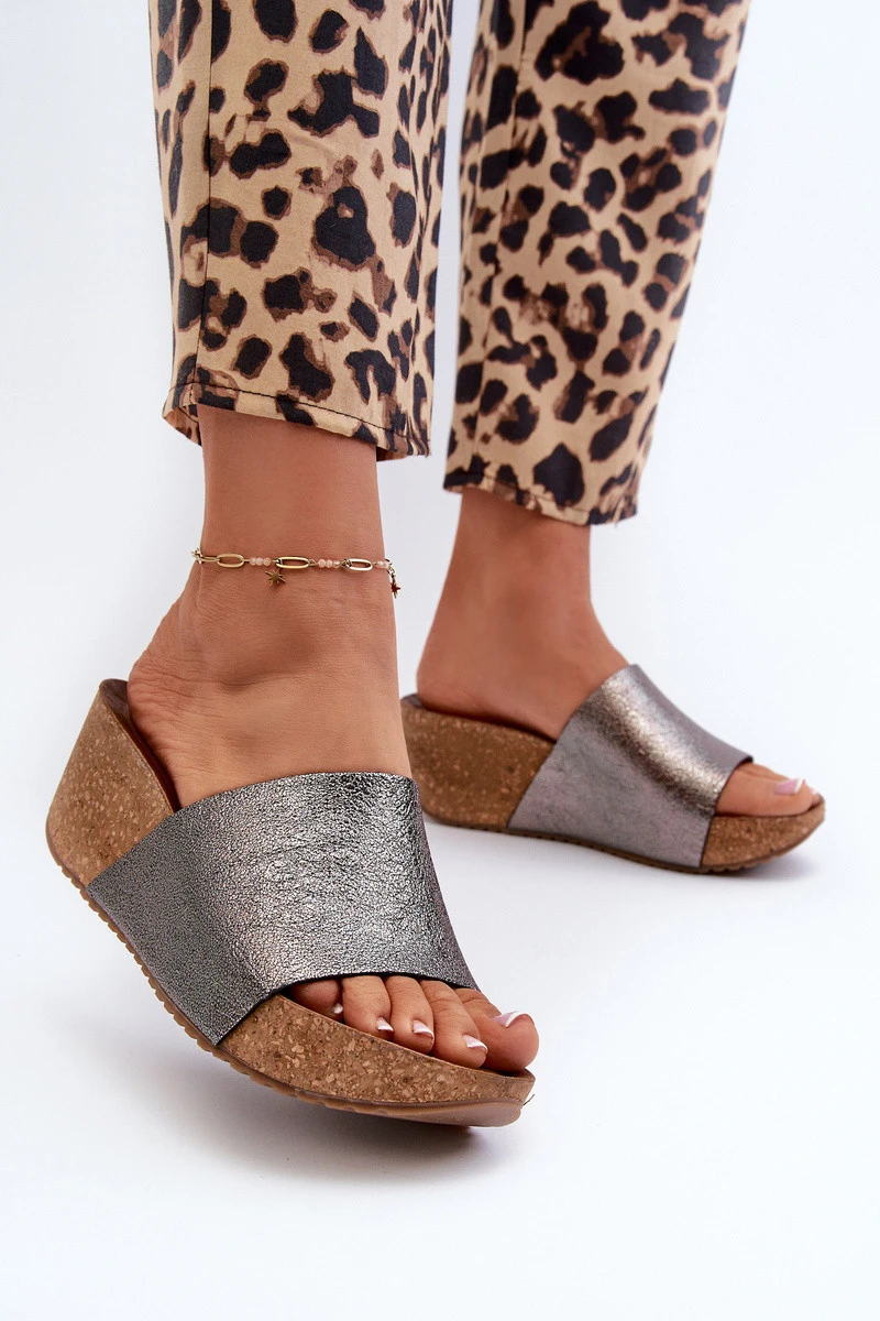 model 21661373 Kožené Dámské Žabky na Korkové Platformě Grafitové - Zazoo