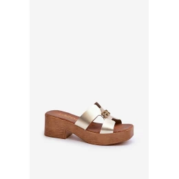 model 21661380 Kožené Elegantní Dámské Žabky S Ozdobou Zlaté - Zazoo
