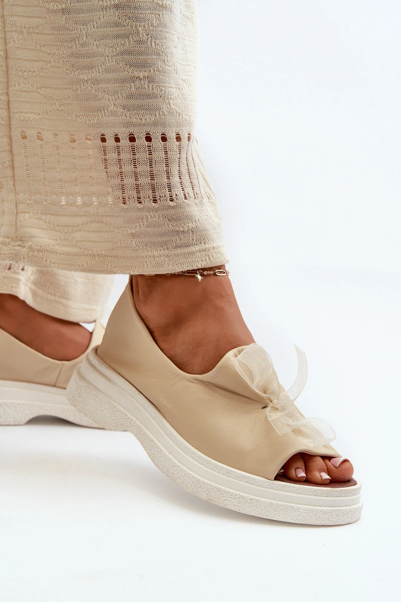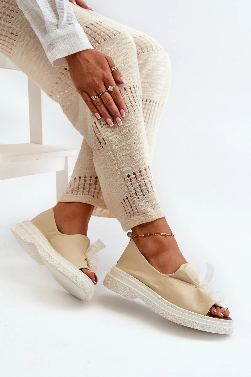 model 21665386 Kožené Dámské Sandály S Mašlí Světle Béžové - Zazoo