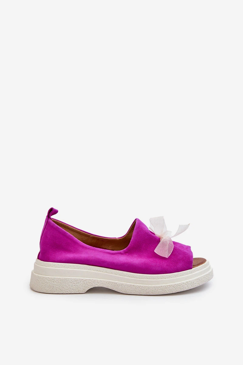 model 21665487 Semišové Dámské Sandály S Mašlí Fuchsie - Zazoo