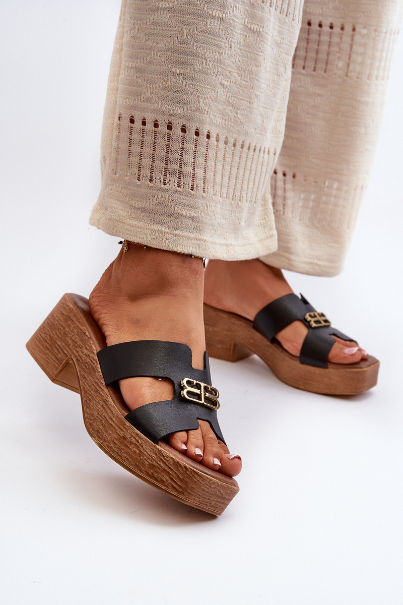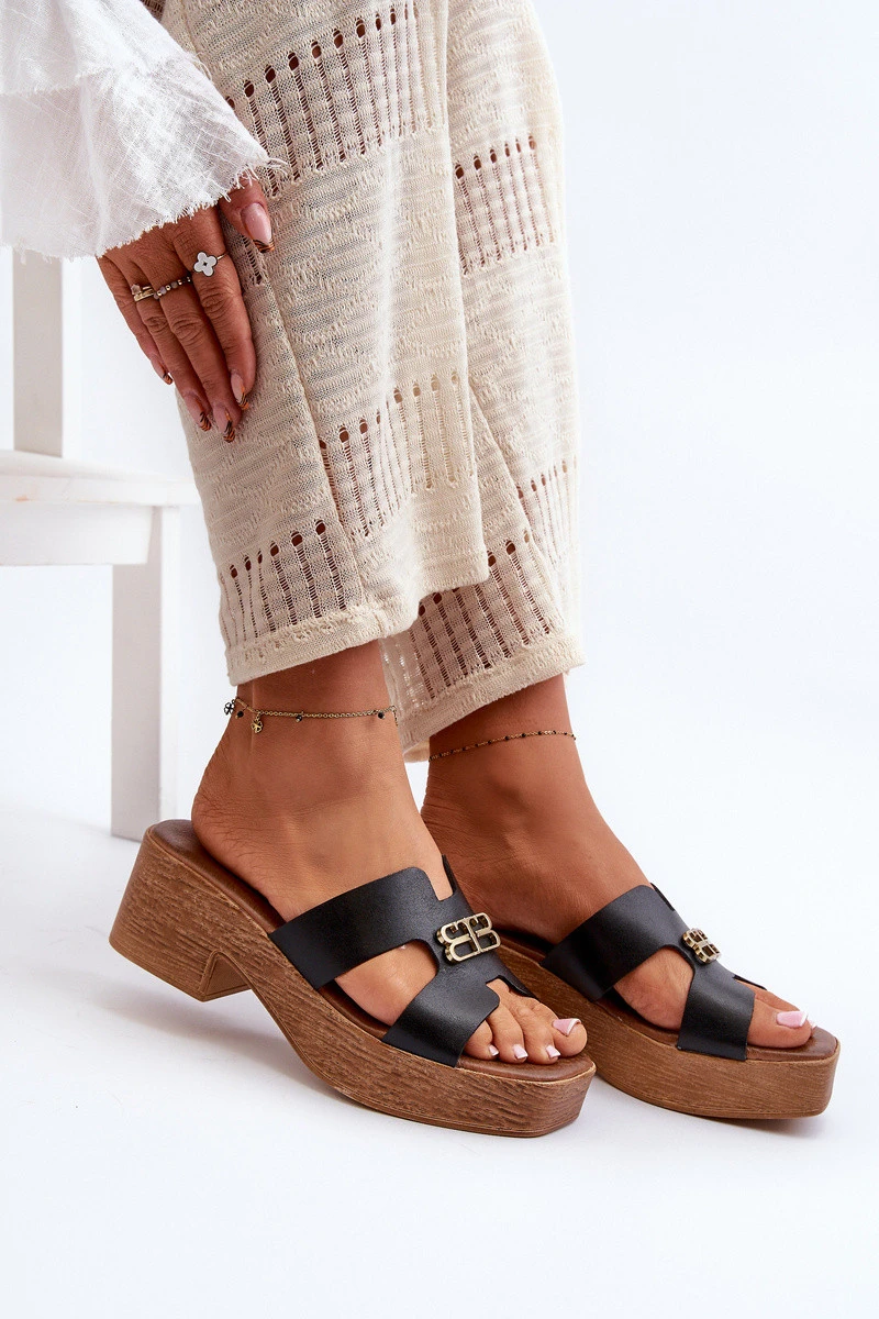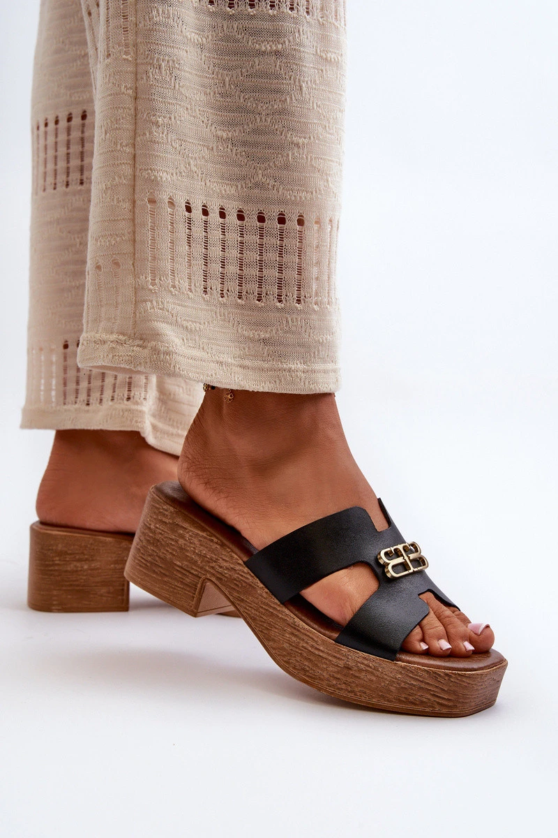 model 21665649 Kožené Elegantní Dámské Žabky S Zlatým Ozdobou Černé - Zazoo