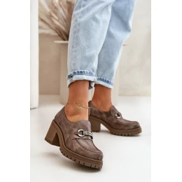 model 21669283 Dámské polobotky na podpatku Přírodní kůže Tmavě béžové - Zazoo