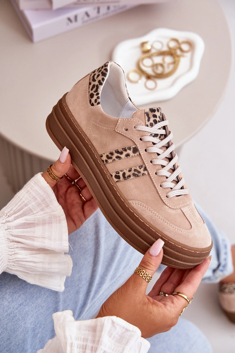 model 21669356 Dámské Semišové Sneakersy Na Platformě Leopardí Růžové - Zazoo