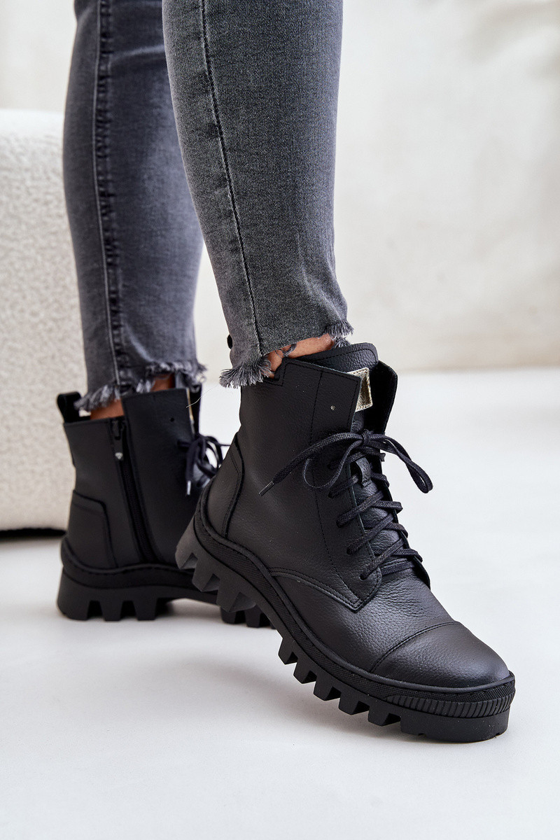 model 21670916 Dámské Botky Z Přírodní Kůže Černé - Zazoo