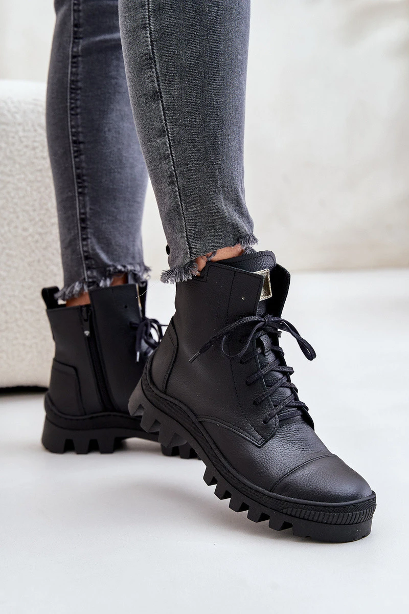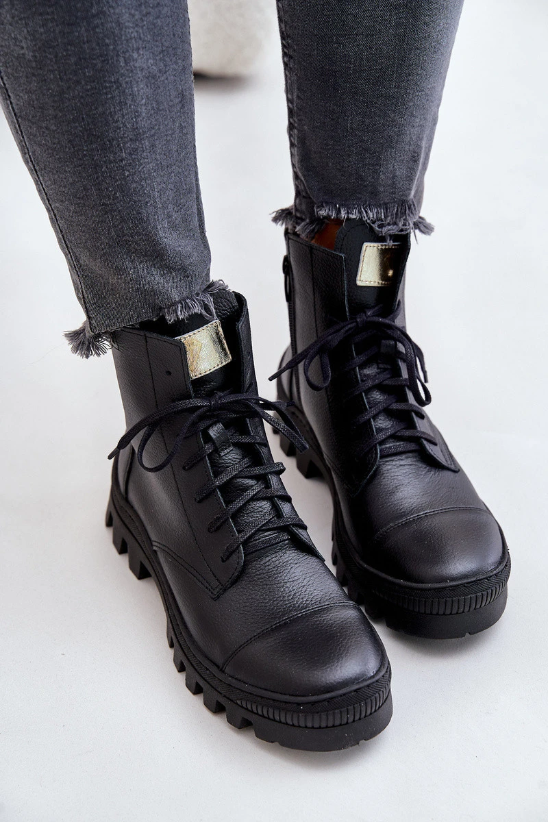 Dámské kotníkové boty vyrobené z přírodní kůže, s výškou nad kotníky. Model se zapíná na zip, s dodatečným šněrováním pro lepší přizpůsobení. Kulaté špičky zajišťují pohodlí při každodenním nošení. Při výběru velikosti se řiďte tabulkou velikostí.