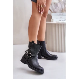model 21673721 Kožené Boty Na Nízkém Podpatku Zateplené Černé - Zazoo